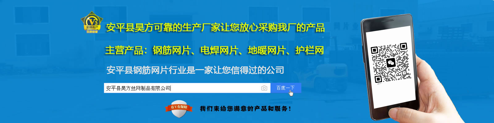 安平縣坤鼎絲網(wǎng)制品有限公司(原安平縣鑫平護欄網(wǎng)廠)位于安平縣油子開發(fā)區(qū),是專業(yè)生產(chǎn)各種公路護欄網(wǎng)、高速公路護欄網(wǎng)、小區(qū)護欄網(wǎng)、金屬焊接防盜網(wǎng)、鐵路隔離防護網(wǎng)、防眩網(wǎng)、防拋網(wǎng)、機場隔離網(wǎng)、圍網(wǎng)、圍欄網(wǎng)、場地圍網(wǎng)、體育圍網(wǎng)、運動場圍網(wǎng)、小區(qū)圍網(wǎng)、生活區(qū)圍網(wǎng)、倉庫隔離網(wǎng)、圍山網(wǎng)、圍墻網(wǎng)、建筑用網(wǎng)的專業(yè)廠家。 本廠以“質(zhì)量求生存,客戶是上帝,交貨及時,價格合理,服務(wù)周到”的宗旨為廣大客戶服務(wù);本著“質(zhì)量求生存,信譽謀發(fā)展”的生產(chǎn)原則,贏得了廣大新老客戶的好評。多年來,我們憑借吸納進的技術(shù)、過硬的質(zhì)量、良好的信譽和服務(wù)、與多家客商建立了穩(wěn)固的供貨關(guān)系,客戶遍及全國各地和地區(qū)。經(jīng)過多年的發(fā)展,我廠一貫堅持以科學(xué)的管理和嚴格的檢驗制度,確保防護網(wǎng)產(chǎn)品的合格率,并以可靠的信譽和服務(wù),贏得了新老客戶的信譽和贊譽。...